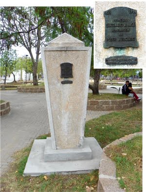 Um monumento de quase 52 anos, localizado na Praça Esporte, traz placa comemorativa ao centenário de Bagé.